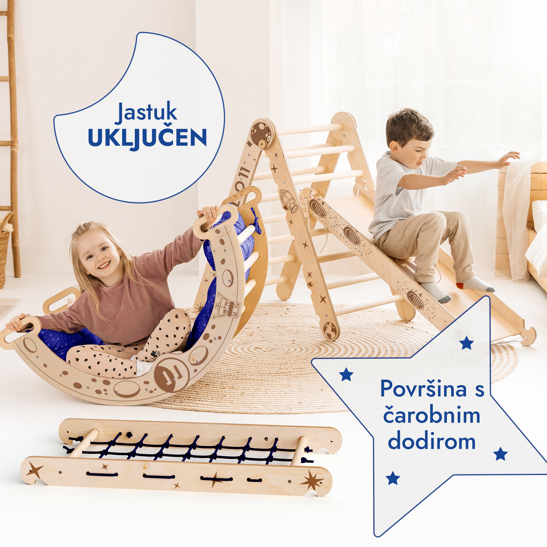 Sustav se jednostavno postavlja u stanu kombinirajući Montessori načela, sigurnost i nadahnuće iz zvijezda.