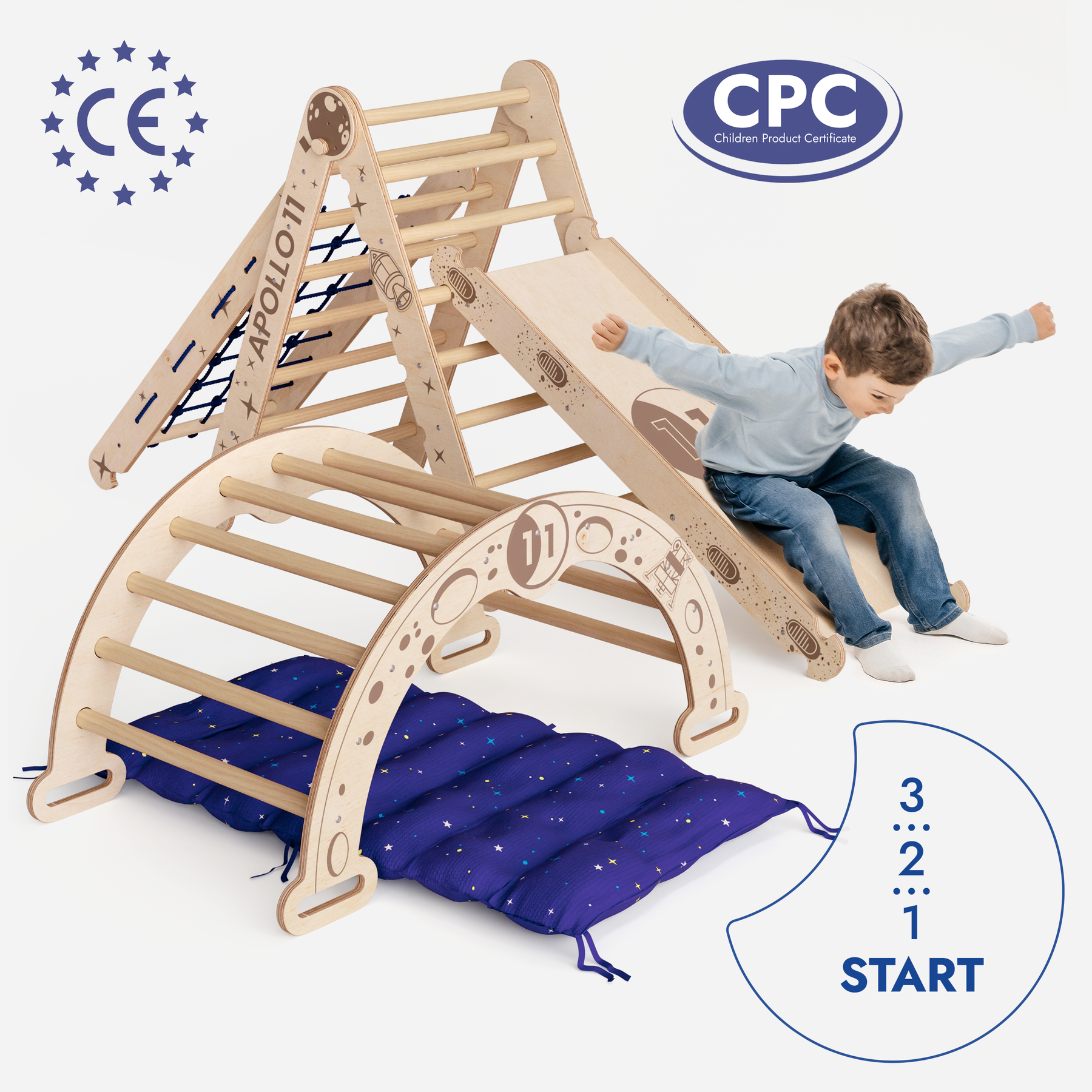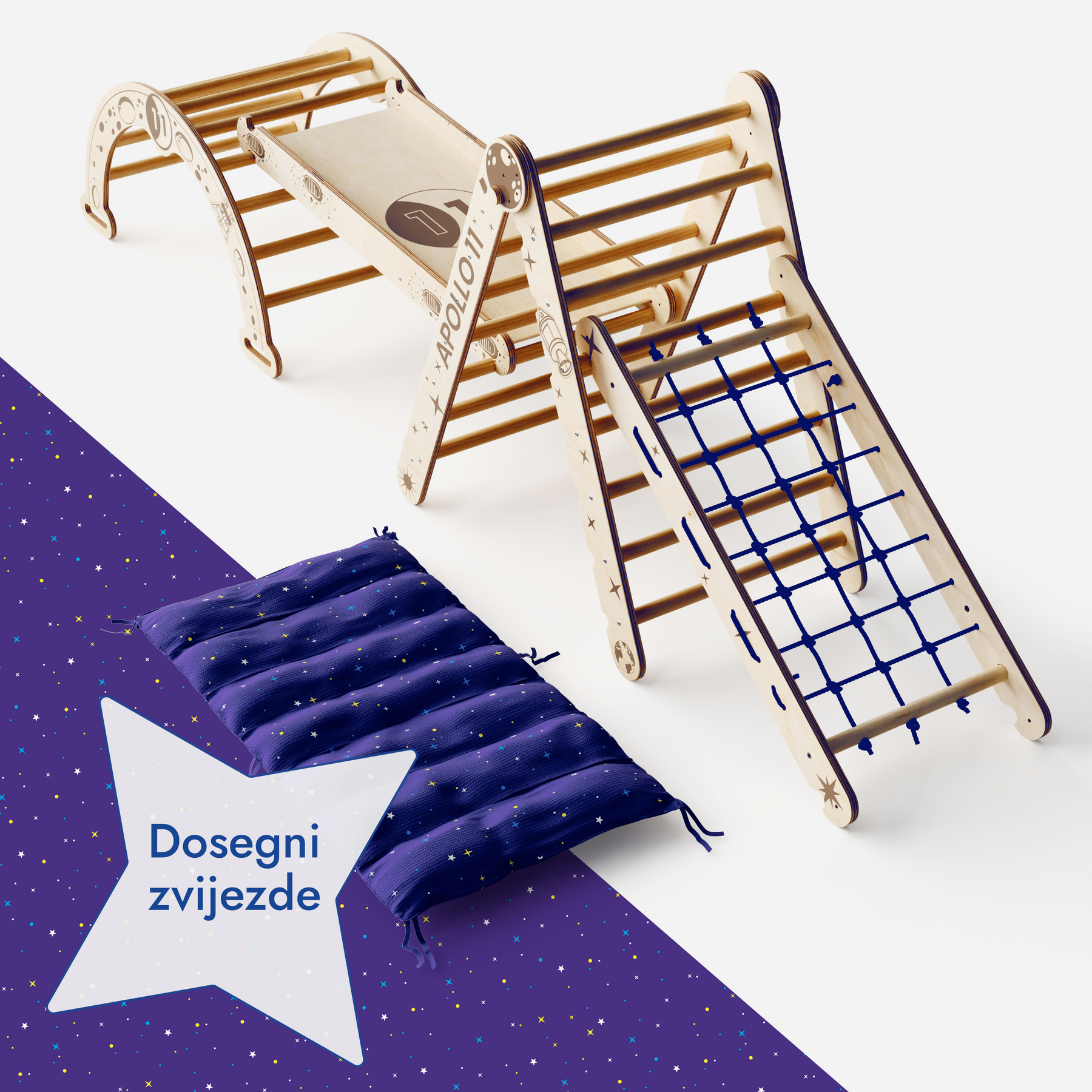 5-u-1 set za penjanje Apollo 11 osobna je svemirska postaja vašeg djeteta, na kojemu je svaka kretanja misija, svaka igra istraživanje i svaki smijeh signal sa zvjezdane stanice. Pažljivo izrađen, uz nadahnuće i vjeru u velike male snove.