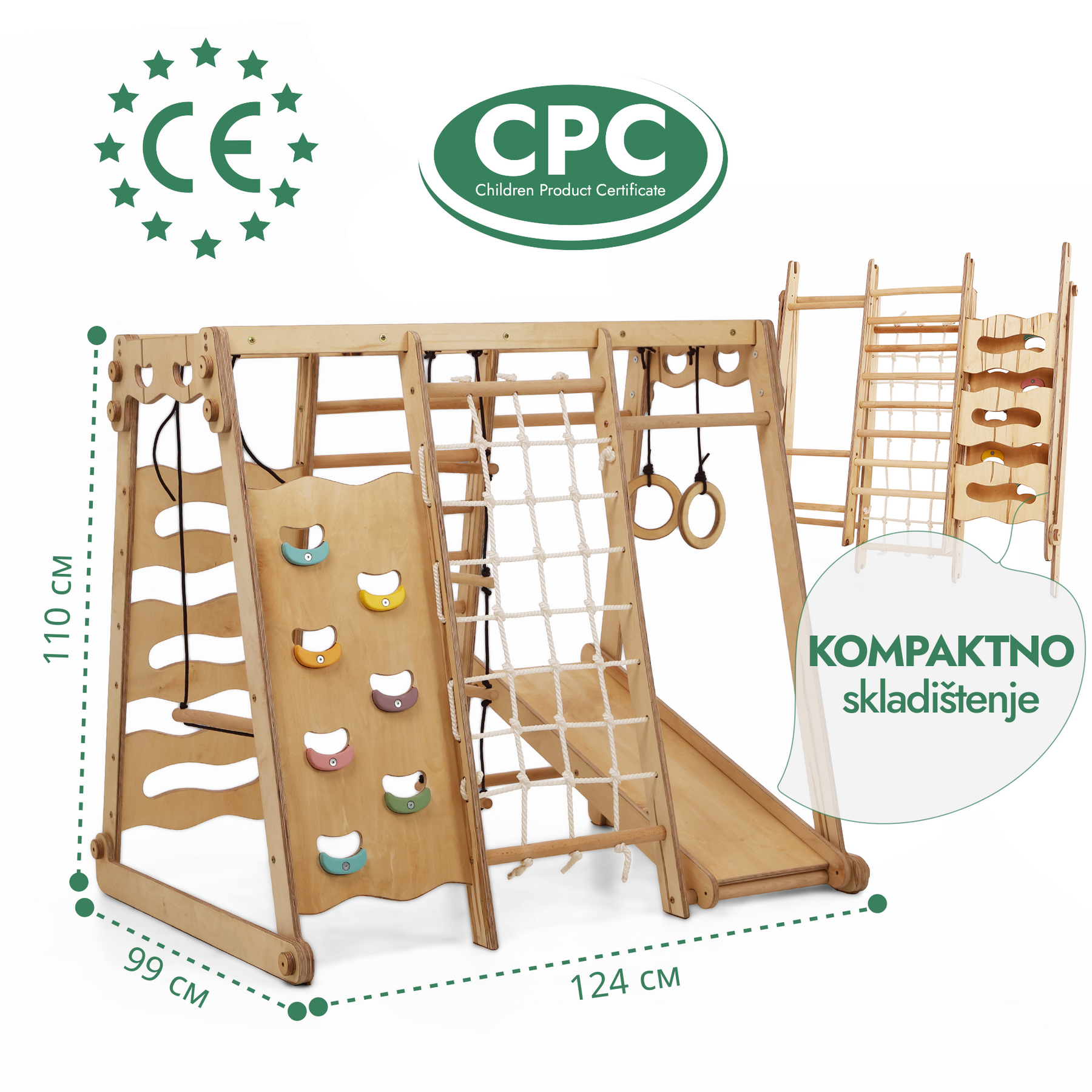Dopustite svom mališanu da istražuje, uči i raste s povjerenjem — bilo kada i bilo gdje! Naše multifunkcionalno igralište savršen je prostor za penjanje, igru i tjelesnu aktivnost, kako u zatvorenom tako i na otvorenom. Svaki element dizajniran je za poticanje koordinacije, snage i mašte kroz sigurnu i zabavnu igru.