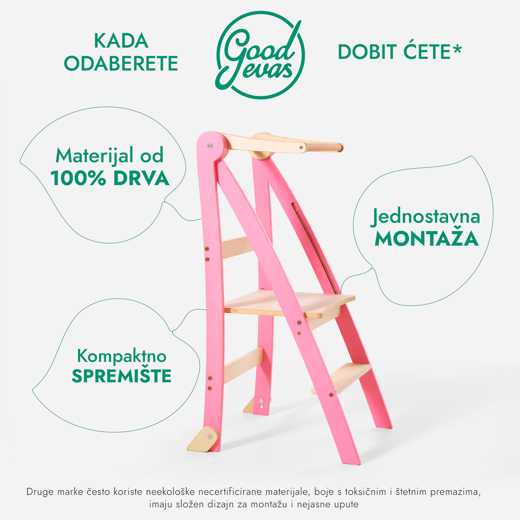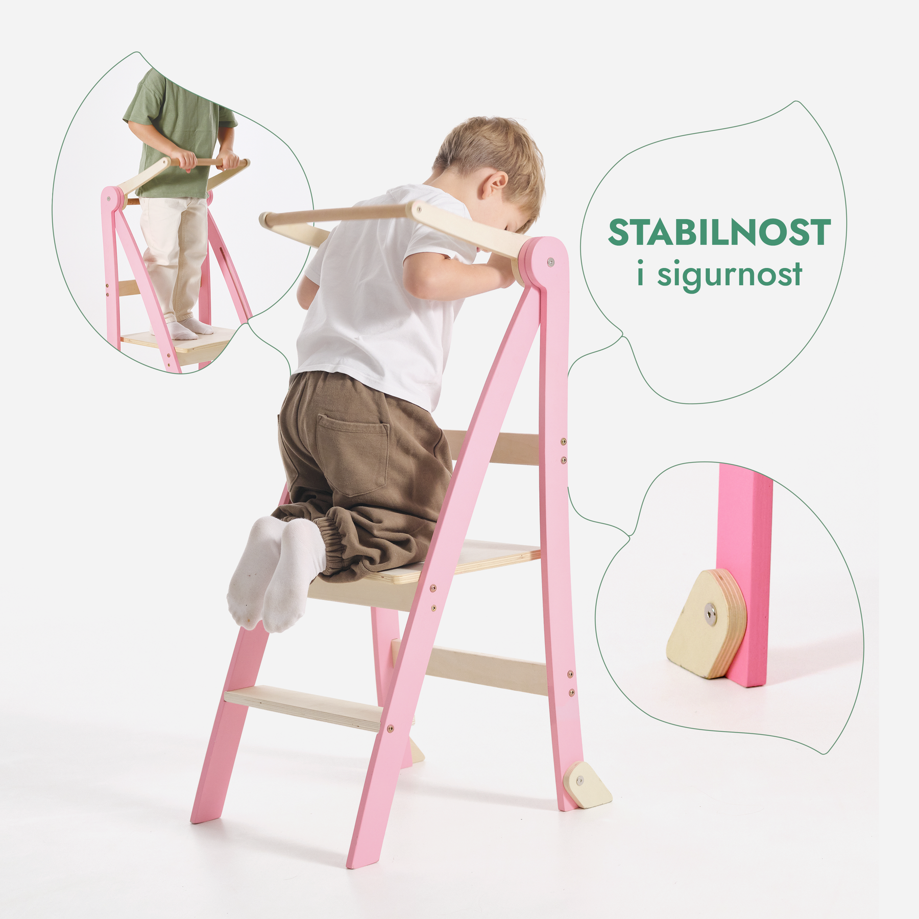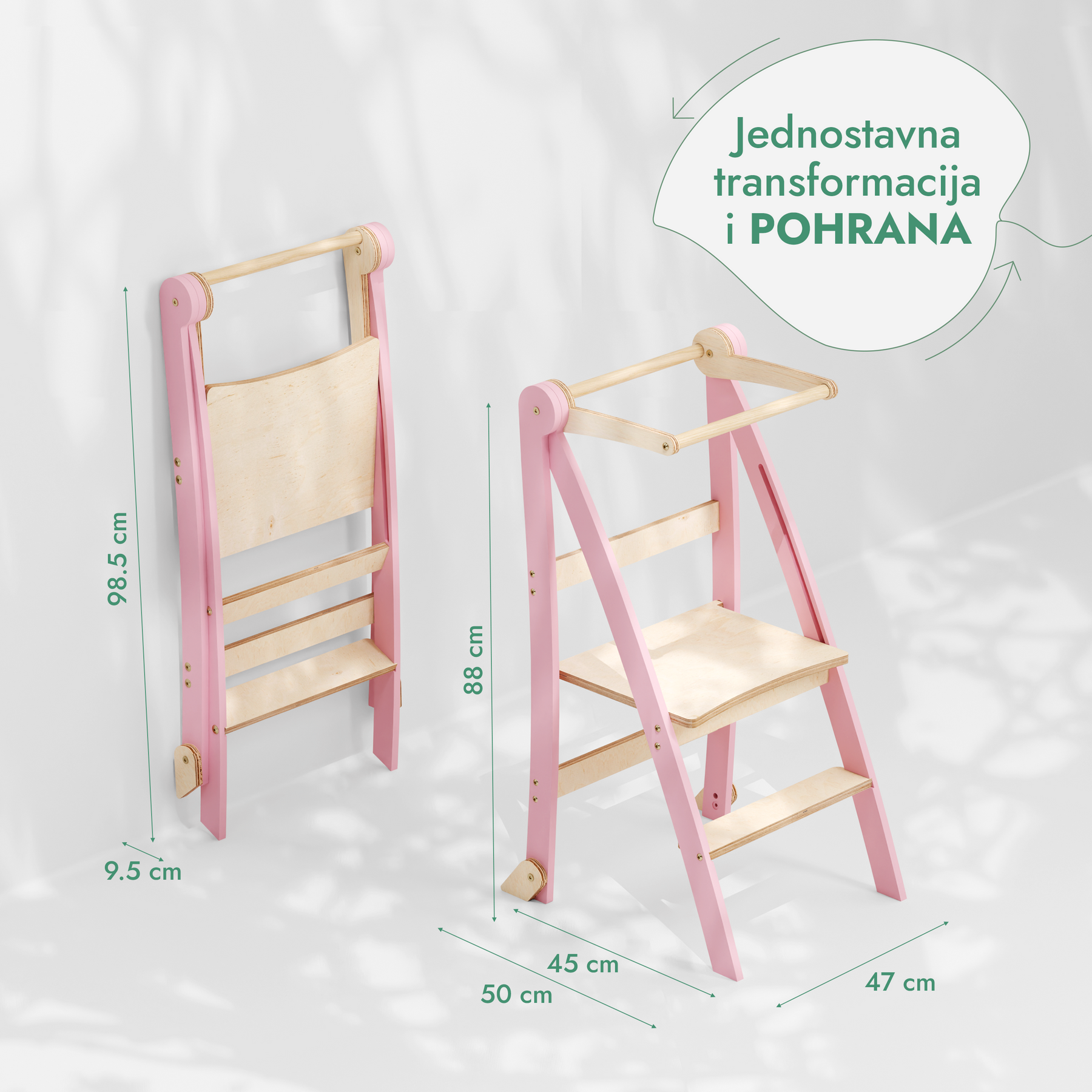 Dopustite svom mališanu da istražuje, uči i raste s pouzdanjem! Od miješenja tijesta, rezanja, točenja pa sve do pranja zubi ili posuđa — svakodnevni zadaci postaju zabavni i edukativni uz naš sklopivi toranj za učenje.