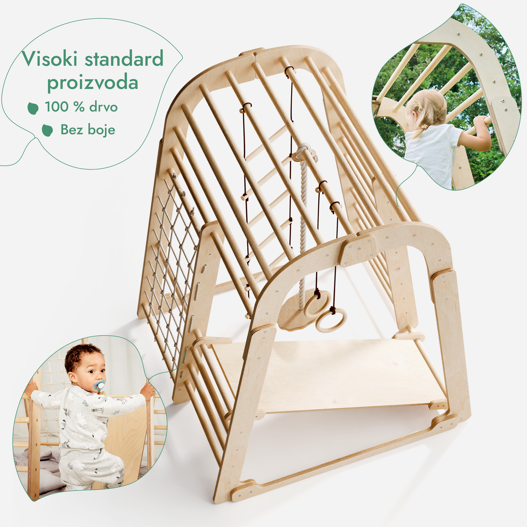 Dopustite svom mališanu da istražuje, uči i raste s povjerenjem — bilo kada i bilo gdje! Naše multifunkcionalno igralište savršen je prostor za penjanje, igru i tjelesnu aktivnost, kako u zatvorenom tako i na otvorenom. Svaki element osmišljen je kako bi poticao koordinaciju, snagu i maštu kroz sigurnu i zabavnu igru.